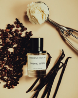 Cosmic Brew is a warm embrace that awakens the senses and soothes the soul. The scent opens with the rich, gourmand aroma of freshly roasted coffee beans swirling with creamy almond milk, inviting you to linger in its delicious depths. At its heart, delicate lily-of-the-valley and heliotrope petals bloom softly into sweet vanilla ice cream, crafting a bouquet that is irresistibly edible. The base wraps everything in molten brown sugar, warm vanilla bean, smooth sandalwood, and glowing amber, leaving a velvety trail like a cozy cosmic ritual. Cosmic Brew is delicious indulgence reimagined, a captivating journey that comforts and enchants with every breath.